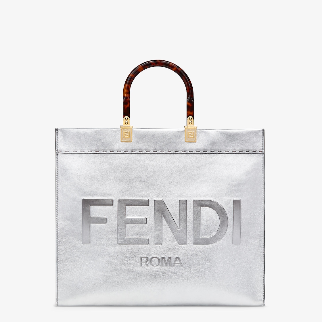 Fendi Sunshine Medium Silver Laminated Leather Shopper Fendi